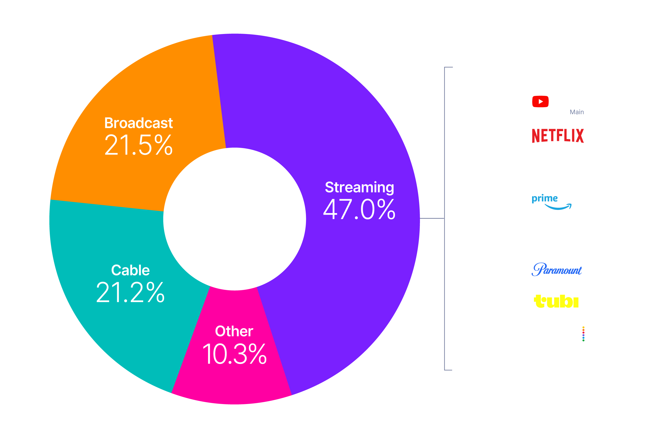 Source : Nielsen Streaming Content Ratings (Amazon Prime Video, AppleTV+, Disney+, Hulu, Max, Paramount+, Peacock et Netflix), Nielsen National TV Panel, États-Unis, visionnage par le biais de la télévision.