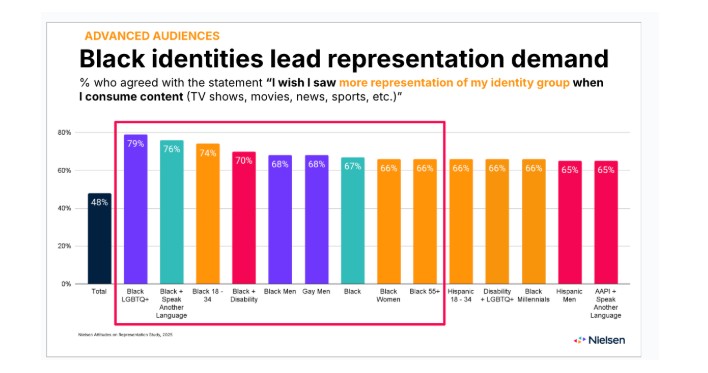 Il existe également une forte opportunité d'atteindre le public noir à la télévision et en streaming, comme le montrent les nouvelles données Nielsen :