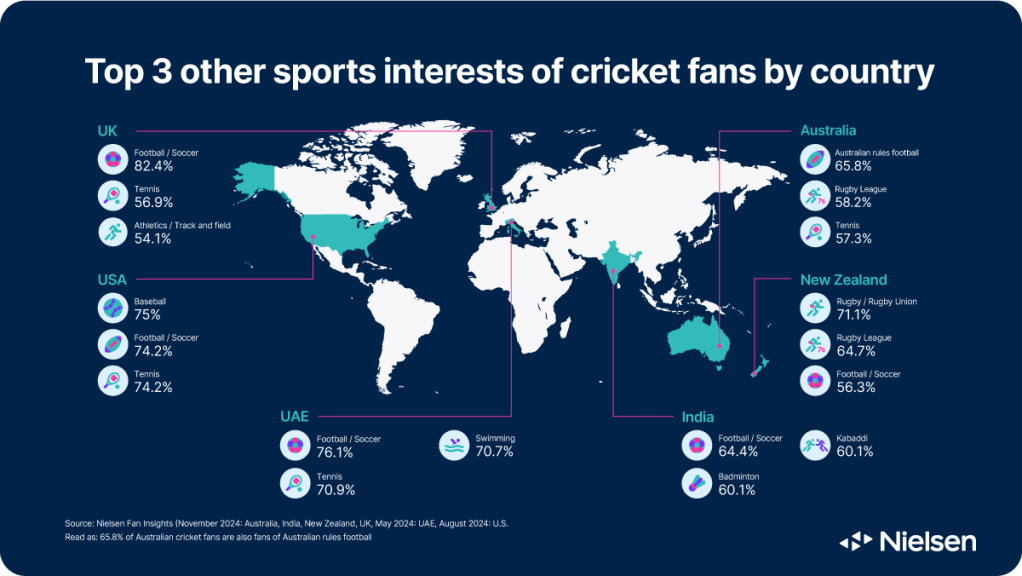 All data presented in this article is from Nielsen Fan Insights (November 2024: Australia, India, New Zealand, UK, May 2024: UAE, August 2024: U.S).